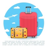 밝은 여행 가방 나 하늘에 비행기 | 프리미엄 벡터